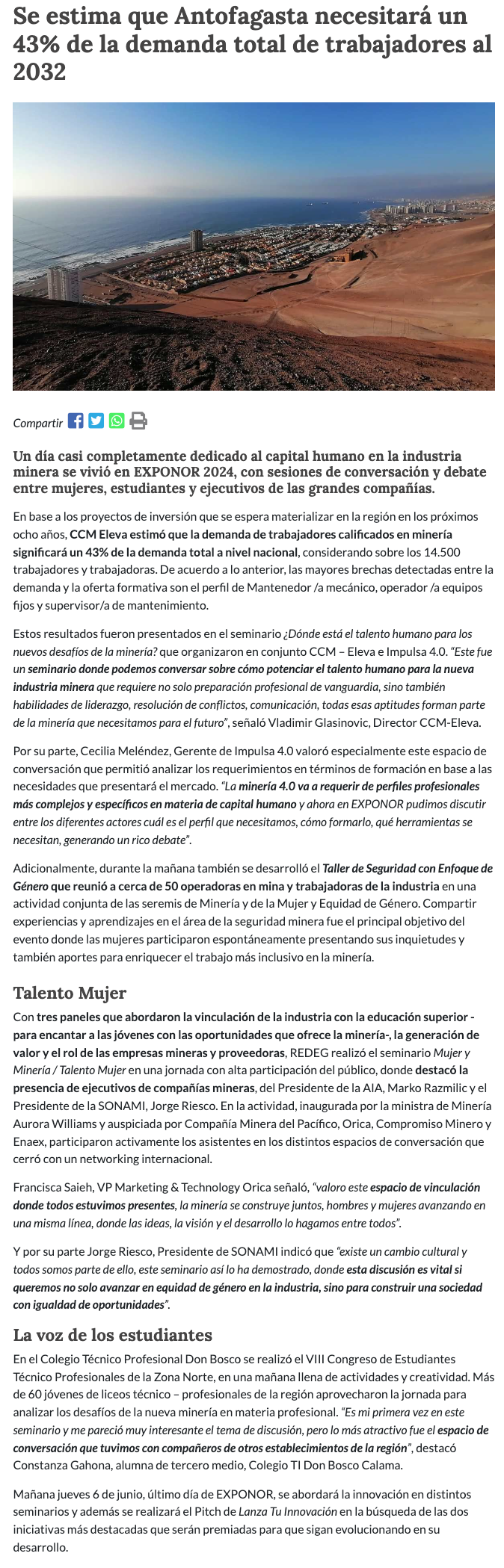 Antofagasta necesitará un 43% de la demanda total de trabajadores al 2032 - (timeline)