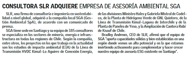 Firma global de sostenibilidad originaria de Reino Unido adquiere consultora ambiental chilena - (DF Online)