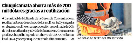 Chuquicamata ahorra más de 700 mil dólares gracias a reutilización de bolas de acero de molinos SAG - (soycalama)