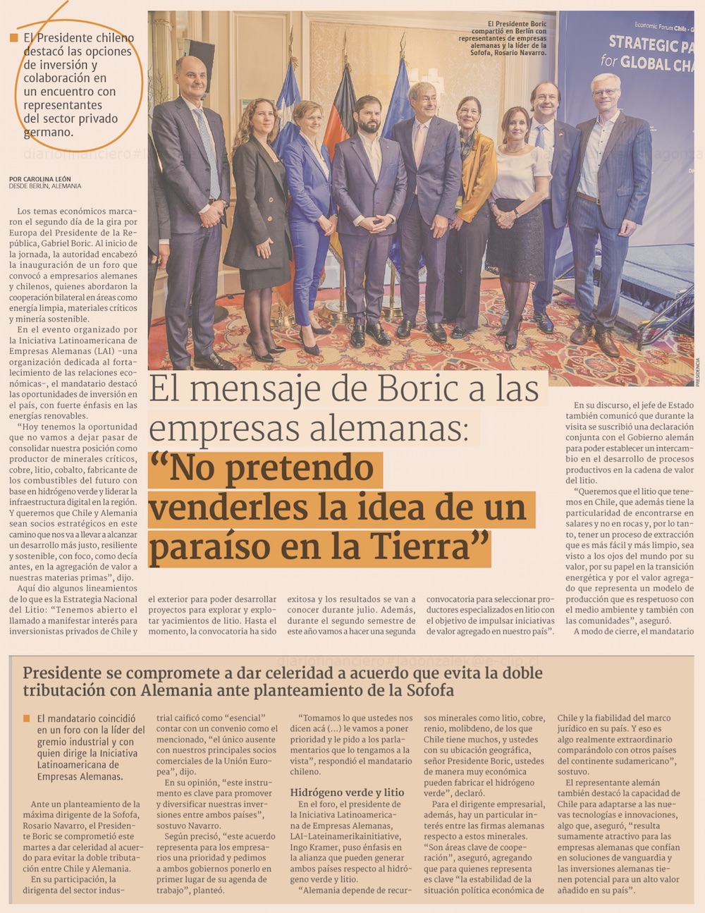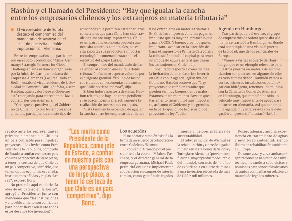 Presidente Boric se compromete a priorizar tratado sobre doble tributación con Alemania - (El Mercurio de Santiago)