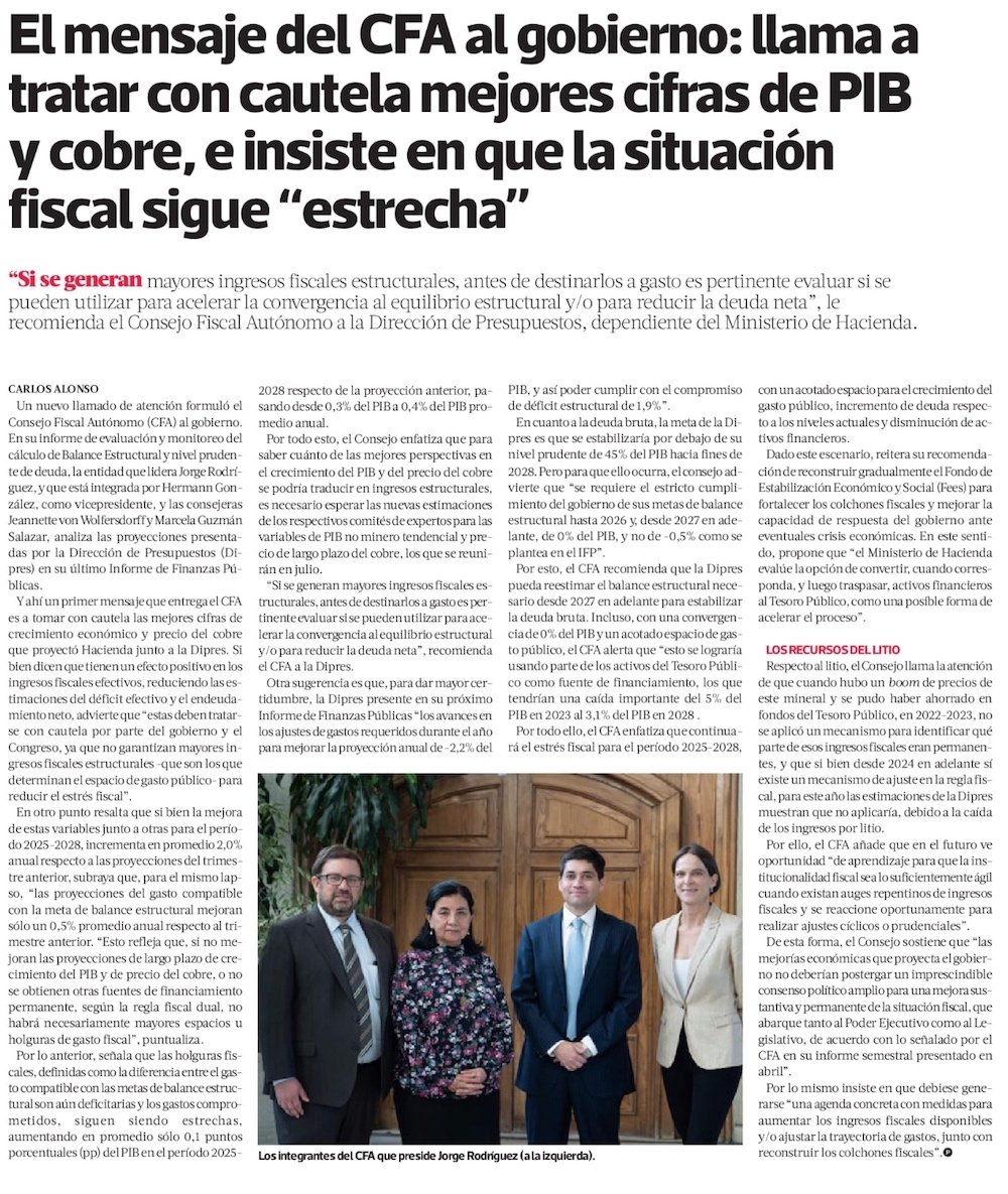 El mensaje de cautela del CFA al Gobierno y al Congreso por mayor crecimiento económico - (El Mercurio de Santiago)