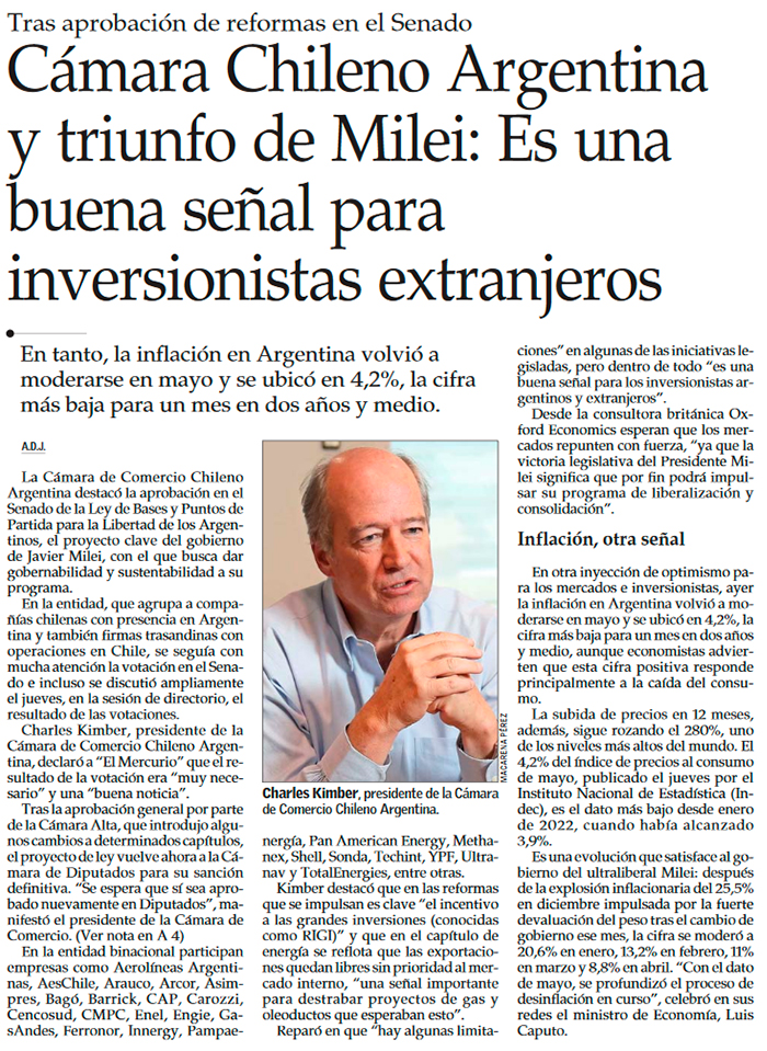 Cómo afectaría a empresas del IPSA expuestas a Argentina el avance de las reformas de Milei - (El Mercurio de Santiago)