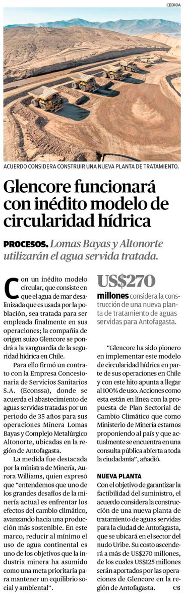 Glencore y Econssa firman acuerdo y avanzan en materia de seguridad hídrica - (mch.cl)