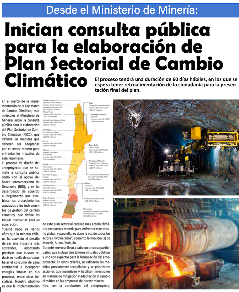 Ministerio de Minería inicia consulta pública para Plan Sectorial de Cambio Climático - (mch.cl)