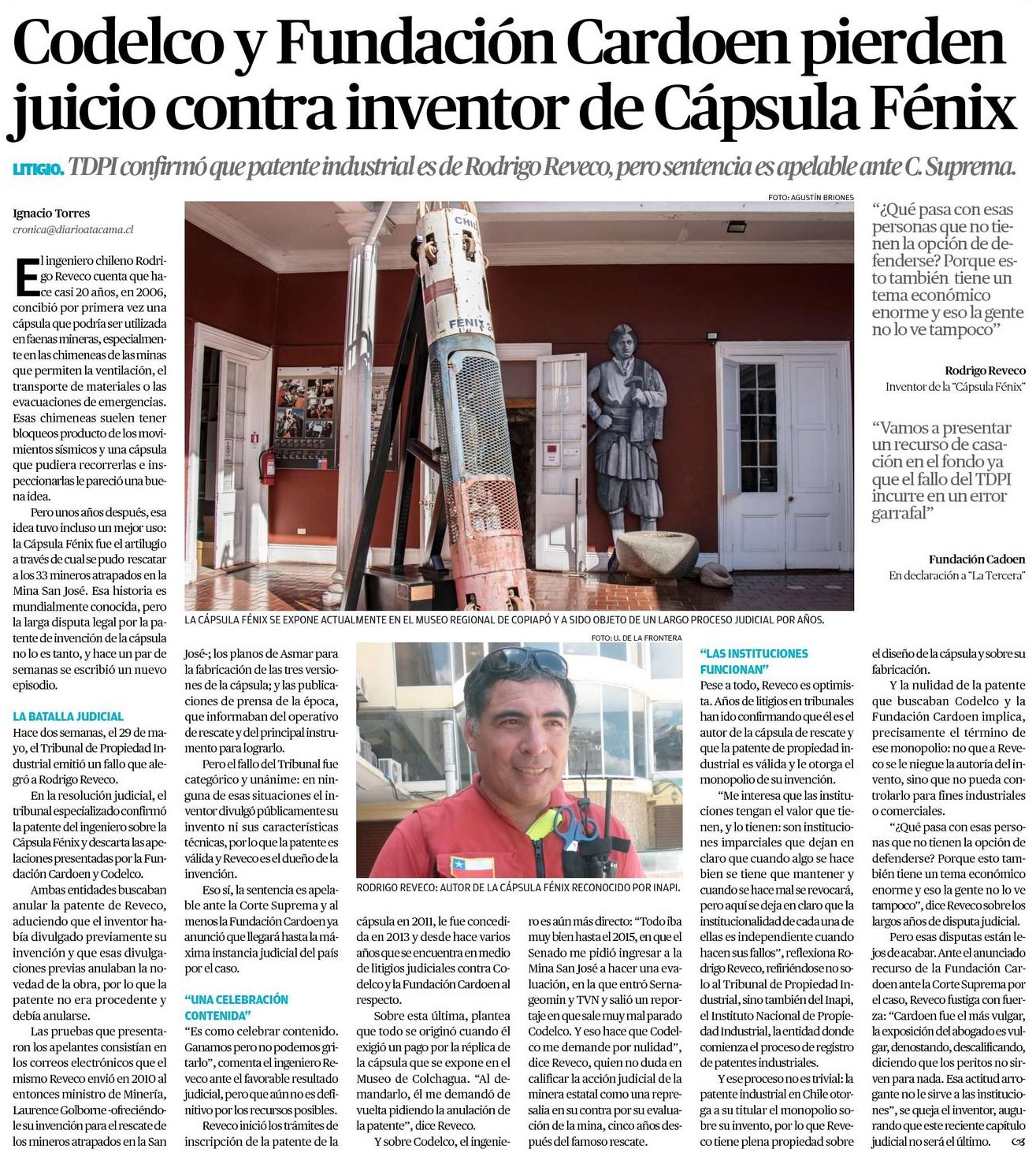 Inventor de la Cápsula Fenix gana disputa por patente a Codelco y Fundación Cardoen - (La Tercera)