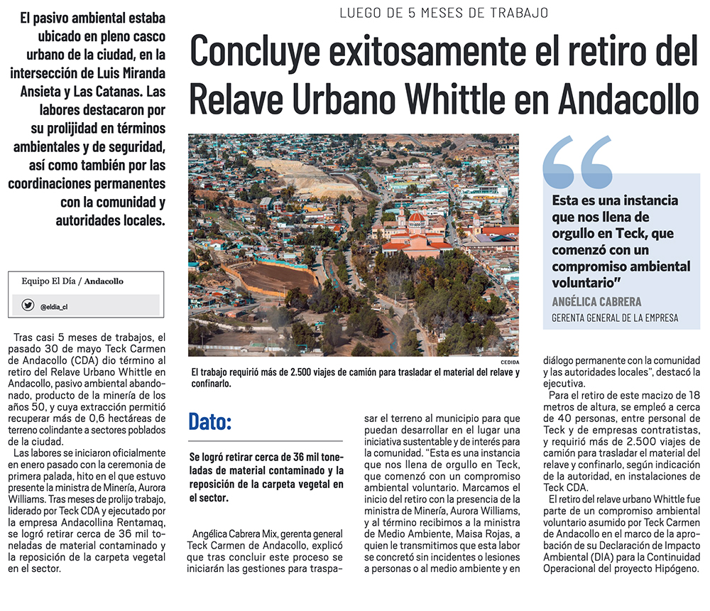 Concluye retiro del relave en Andacollo - (La Región)