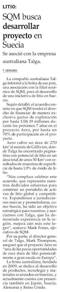 SQM y Talga Group se asocian para recursos minerales de litio en Suecia - (redimin)