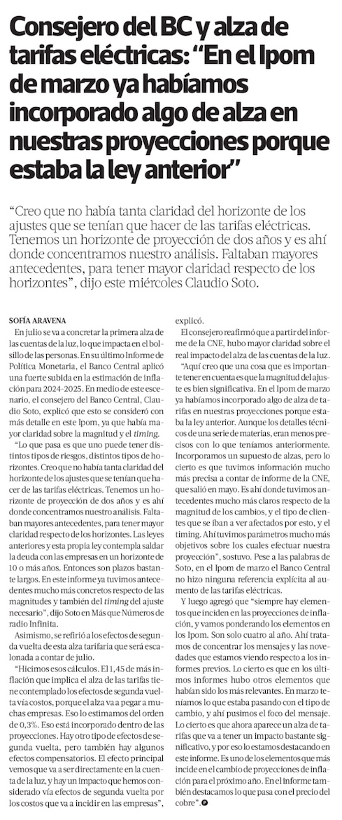 Soto atribuye a la Fed y al cobre reciente alza del dólar y califica IPoM de junio como “más controversial” - (Diario Financiero)