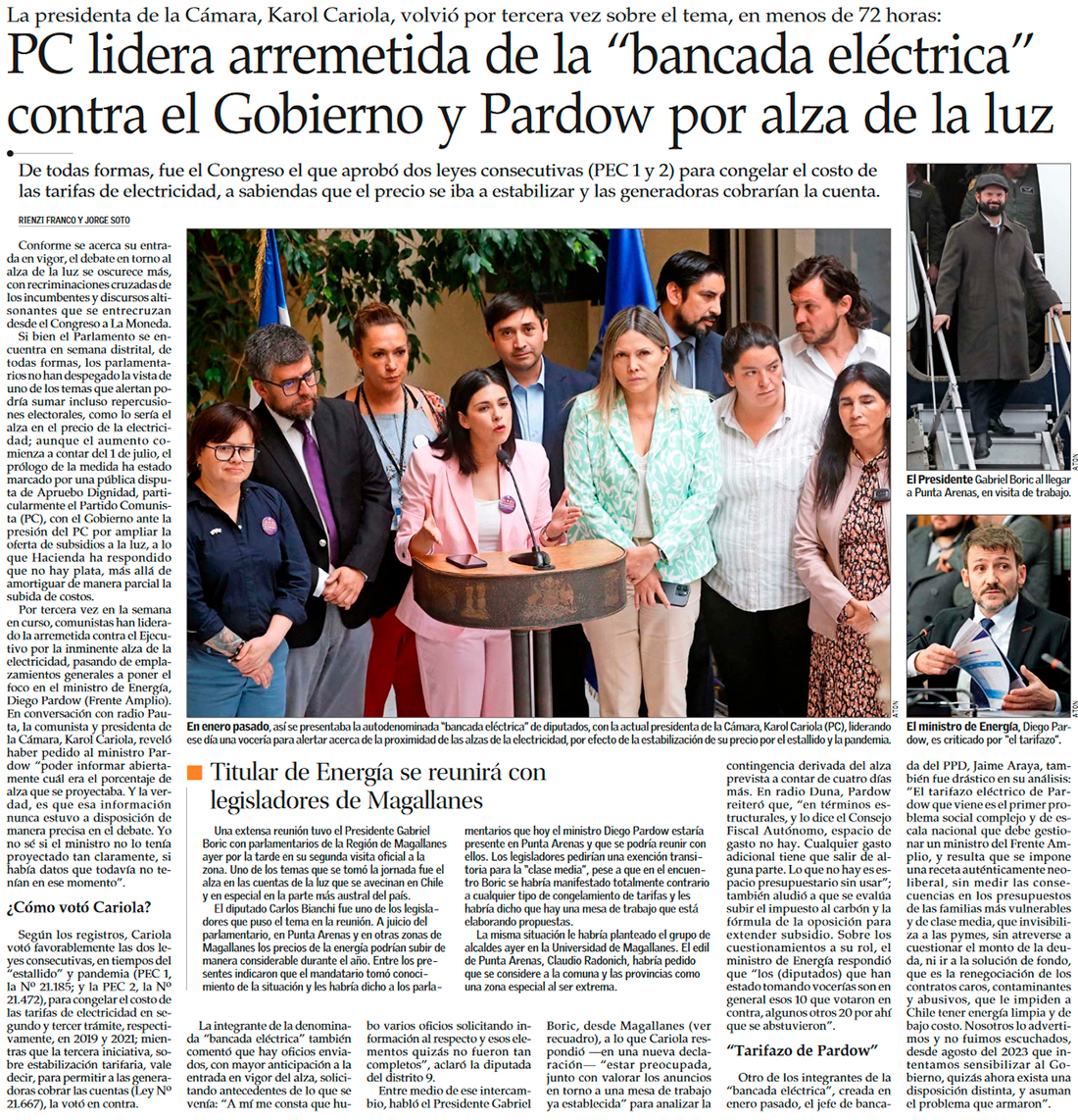 Alzas de electricidad: Los que apoyaron a Pardow y ahora se quejan - (La Segunda)