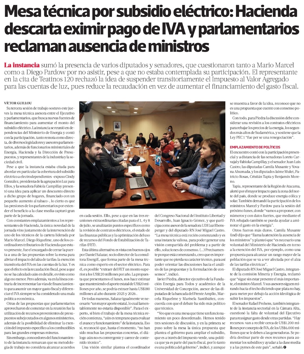 ¿Próximo conflicto en el sector eléctrico? Convocan mesa por generadoras de menor escala - (El Mercurio de Santiago)