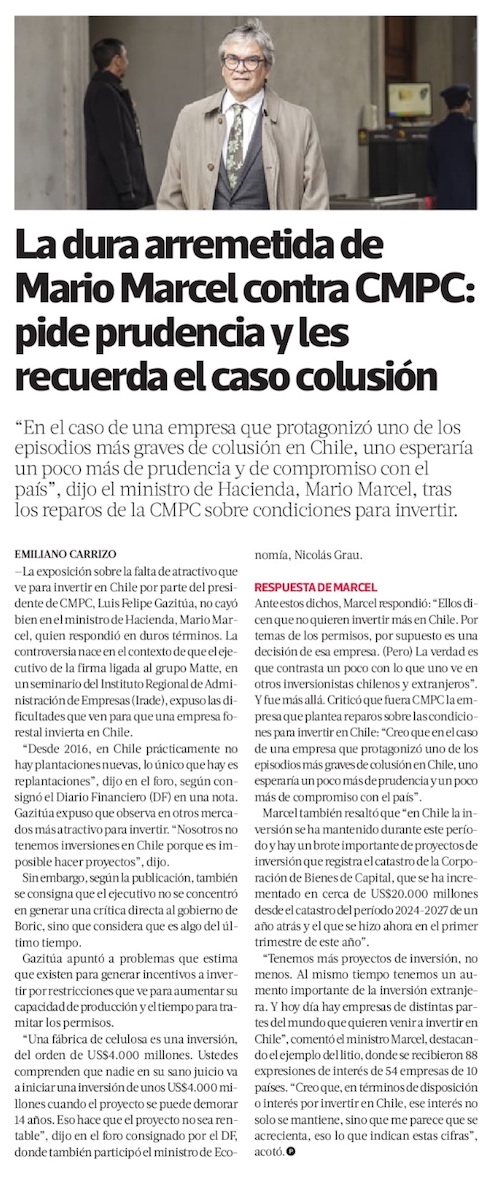 La dura respuesta del ministro de Hacienda al presidente de CMPC - (El Mercurio de Santiago)