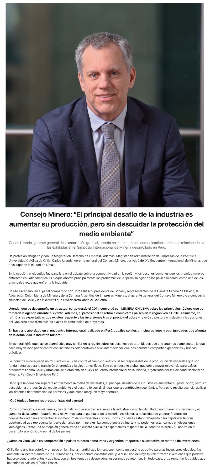 Carlos Urenda, del Consejo Minero: "El principal desafío de la industria es aumentar su producción, pero sin descuidar la protección del medio ambiente" - (Nostálgica Online)