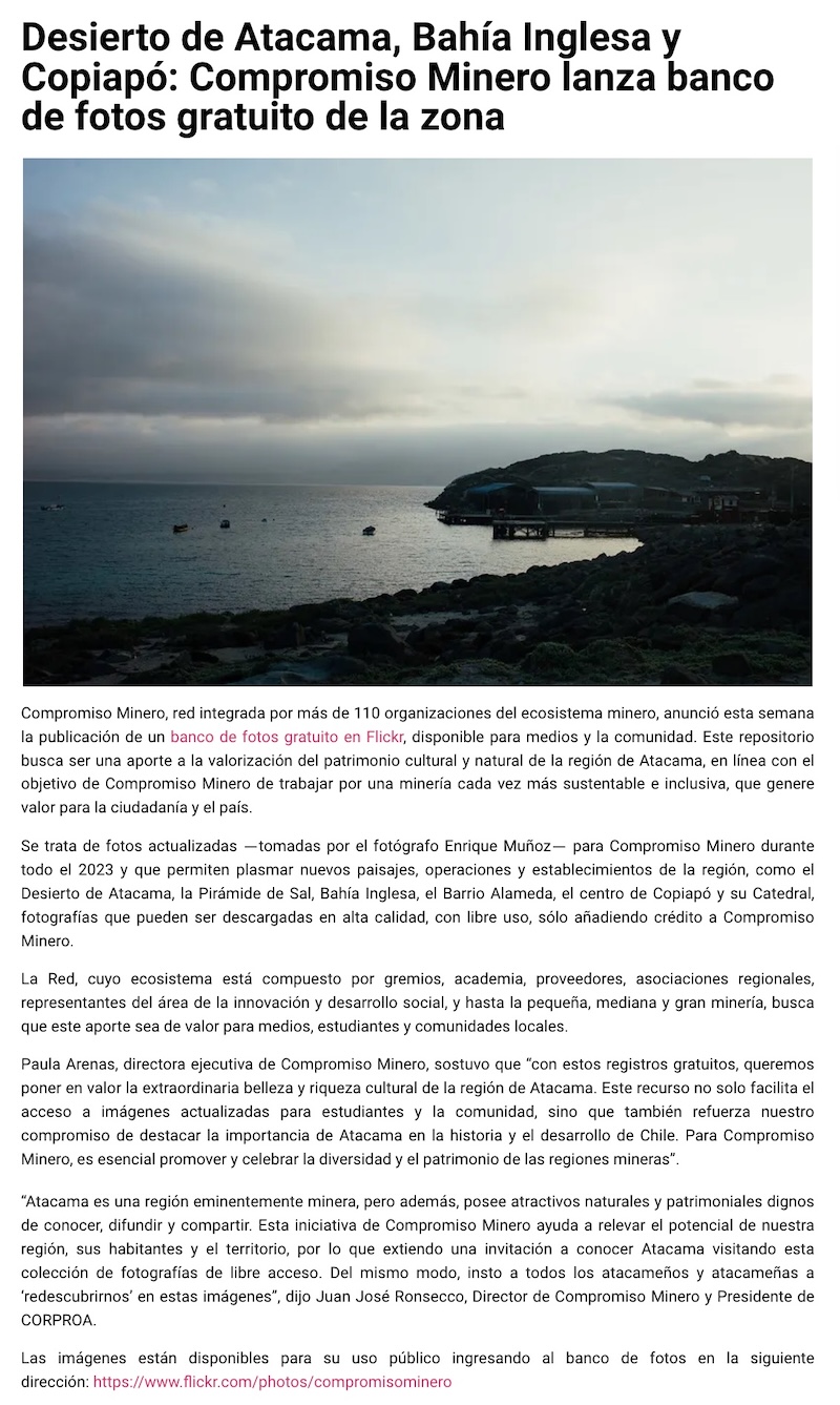 Compromiso Minero lanza banco de fotos gratuito del Desierto de Atacama, Bahía Inglesa y Copiapó: - (Nostálgica Online)