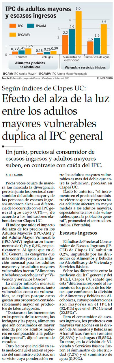 Pese a negativo IPC en junio, inflación sería de hasta 0,7% este mes por tarifas de la luz - (El Mercurio de Santiago)