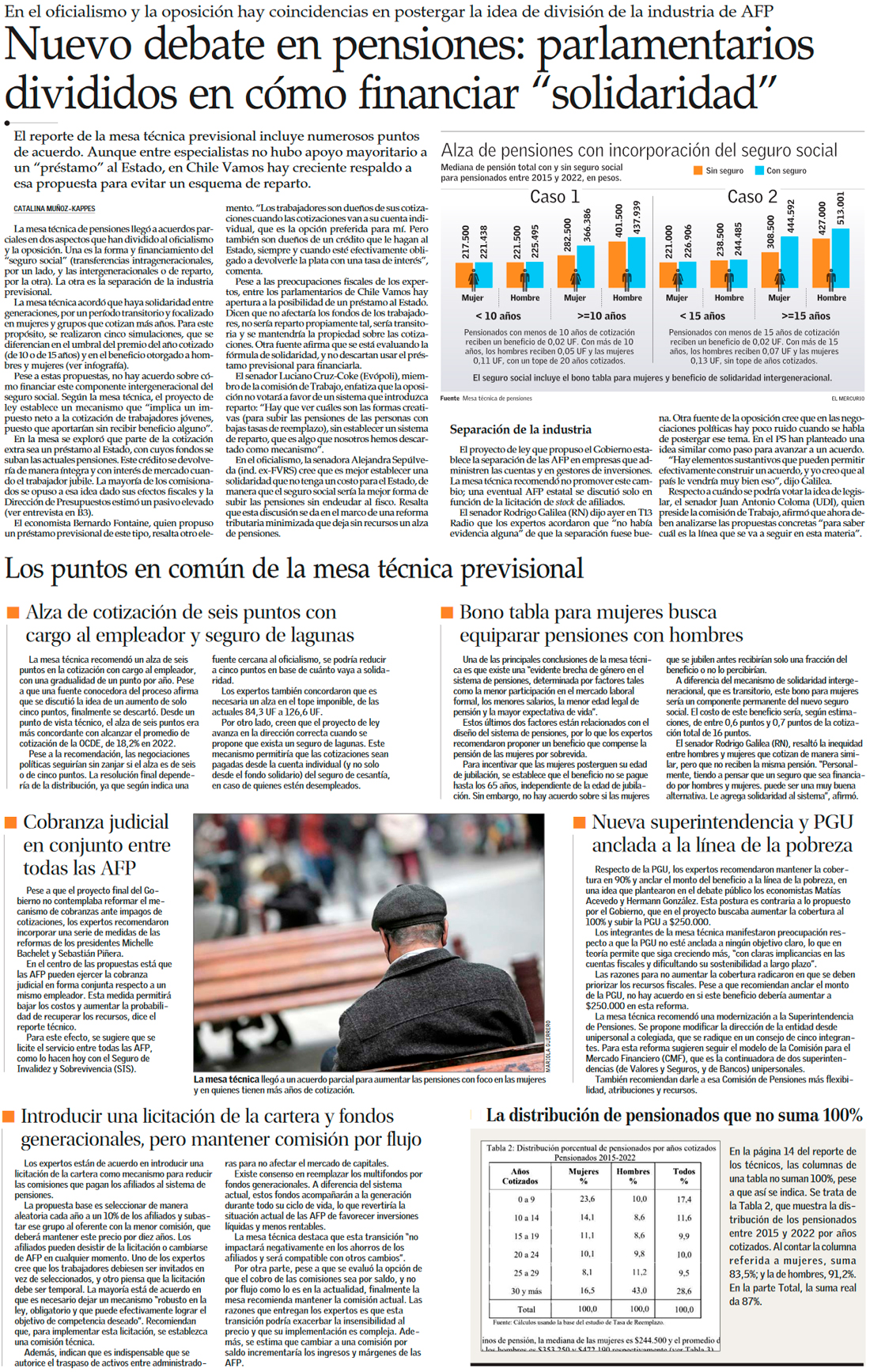 Reforma previsional: mesa técnica propone no extender PGU a 100% de la población y que beneficio de solidaridad intergeneracional sea mayor para mujeres - (Pulso)
