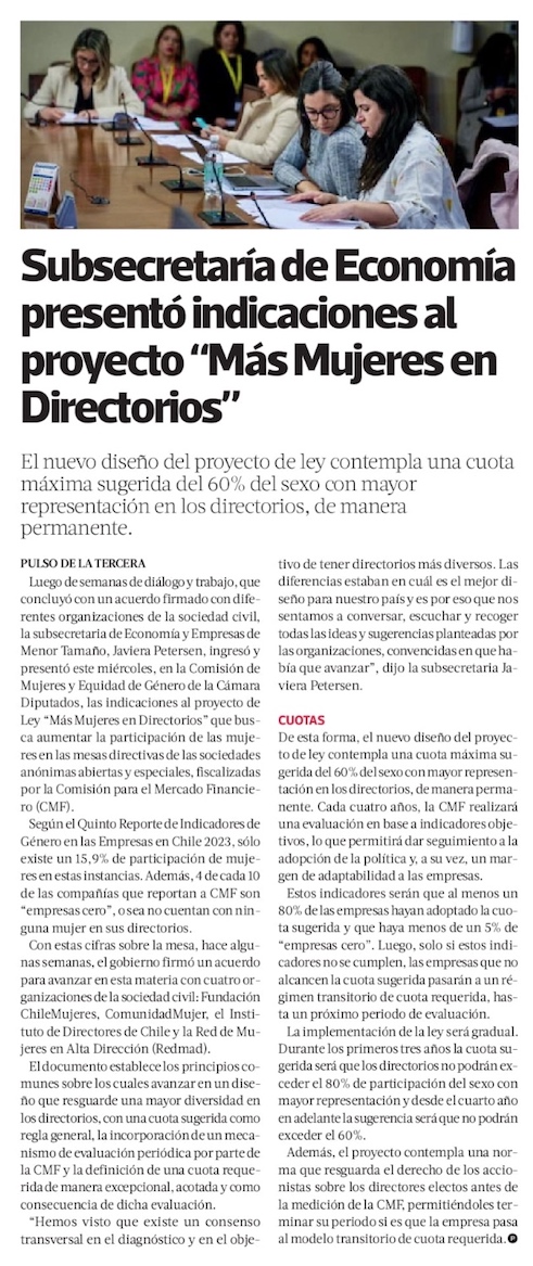 Ejecutivo flexibiliza proyecto de cuotas de género en directorios - (El Mercurio de Santiago)
