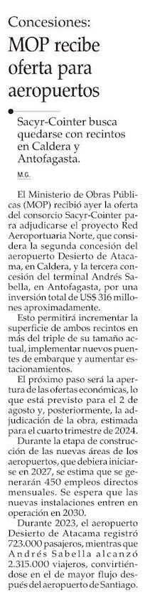 MOP recibe ofertas para concesión de los aeropuertos de Atacama y Antofagasta - (El Diario de Atacama)