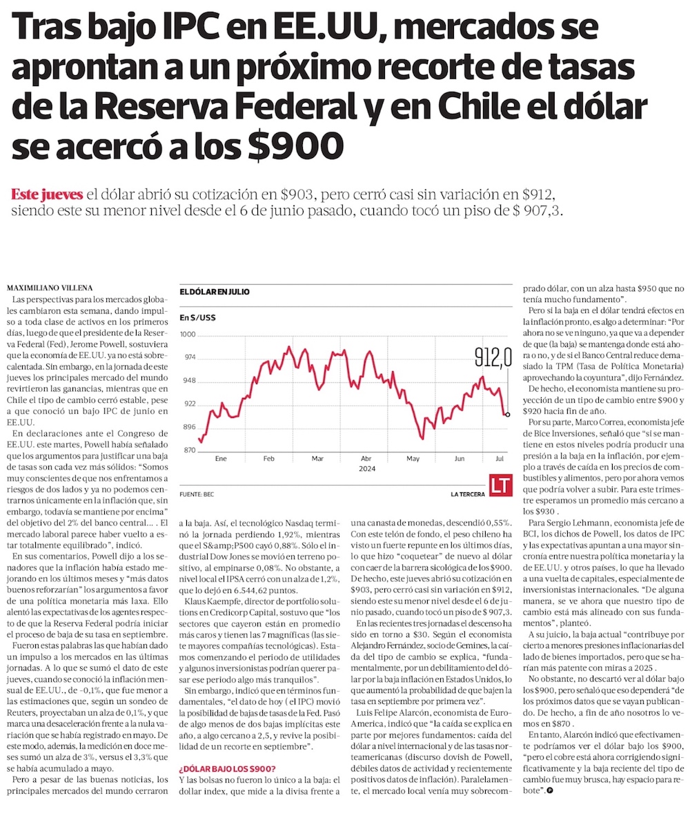 Inflación en EEUU sorprende a la baja y se afirma la posibilidad de recorte de tasas en septiembre - (Diario Financiero)
