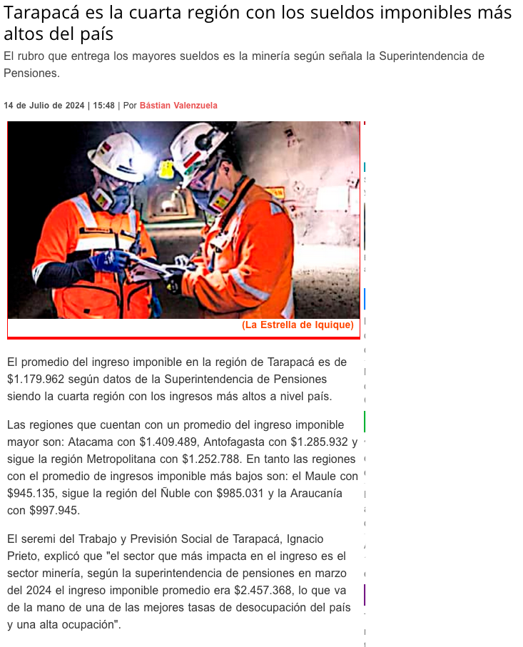 Tarapacá es la cuarta región con los sueldos imponibles más altos - (Estrella de Iquique)