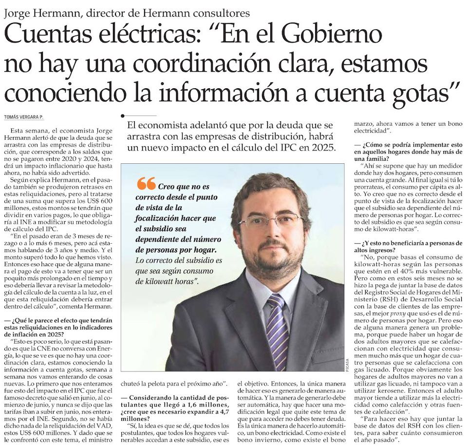 Cuentas de la luz: pagos pendientes con distribuidoras tendrán otro impacto en el IPC - (El Mercurio de Santiago)