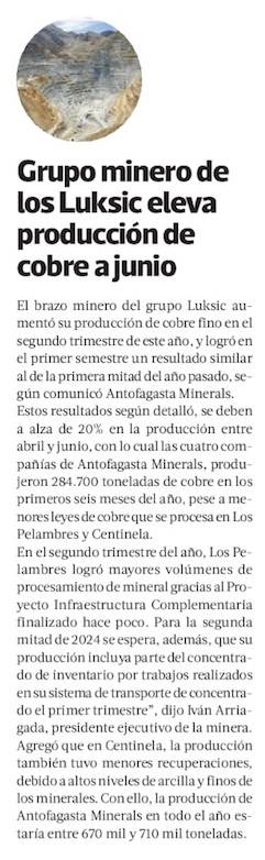 Grupo minero de los Luksic aumenta su producción de cobre en el segundo trimestre - (La Tercera Online)