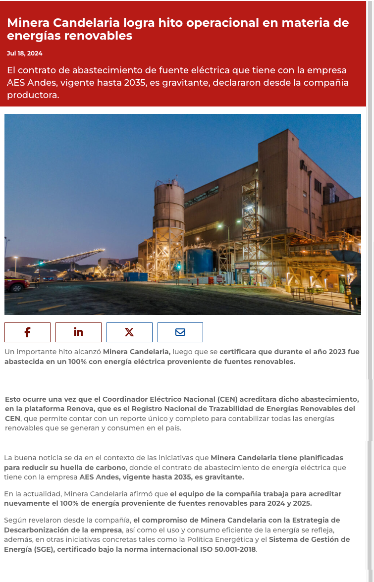 Candelaria fue abastecida en su 100% con ERNC - (El Diario de Atacama)