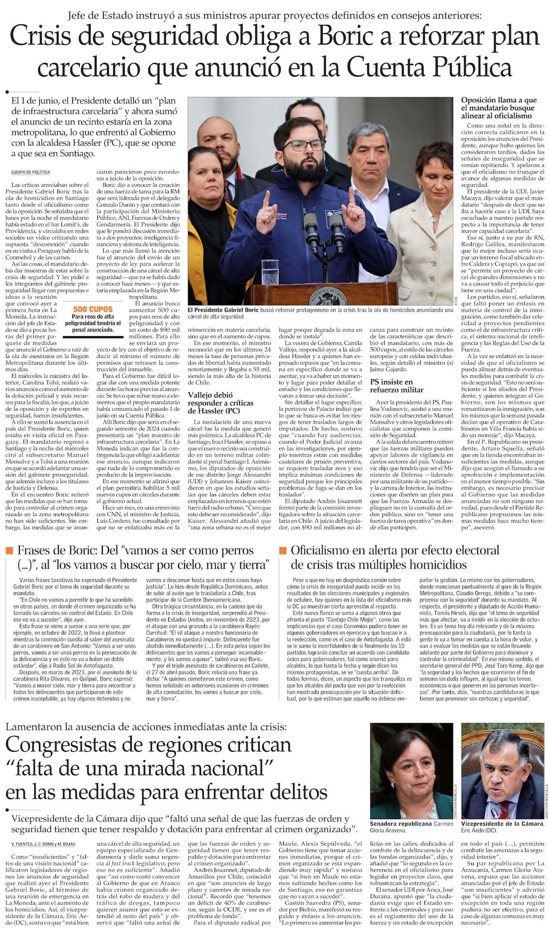 Crisis de seguridad: Boric anuncia medidas, cancela gira a Francia y ministros agendan reuniones - (La Tercera)