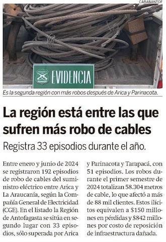 Este año se han robado casi 2 kilómetros de cable de cobre - (Hoy x hoy)