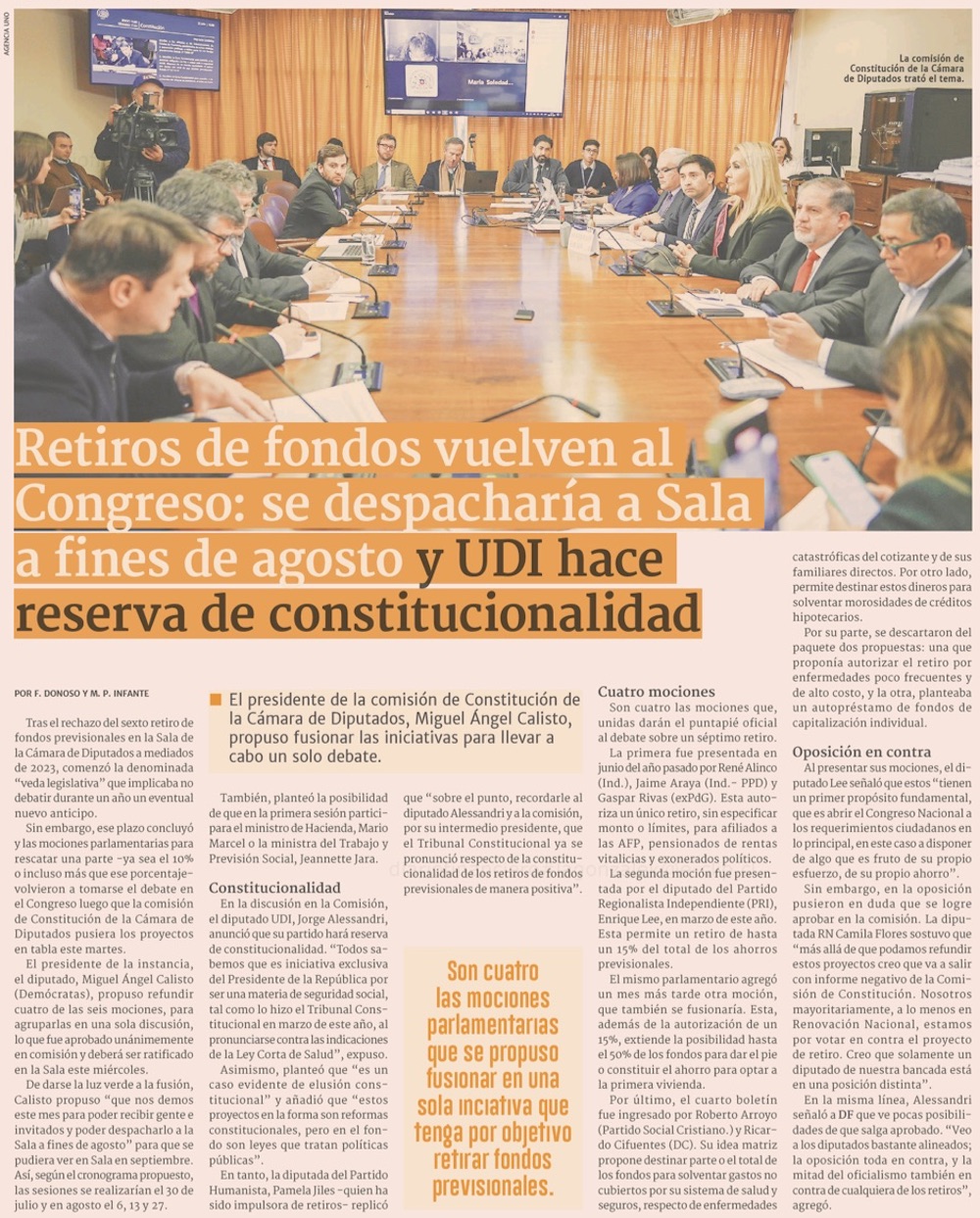 Séptimo retiro suma apoyo en el oficialismo y complica objetivos de la reforma previsional - (El Mercurio de Santiago)