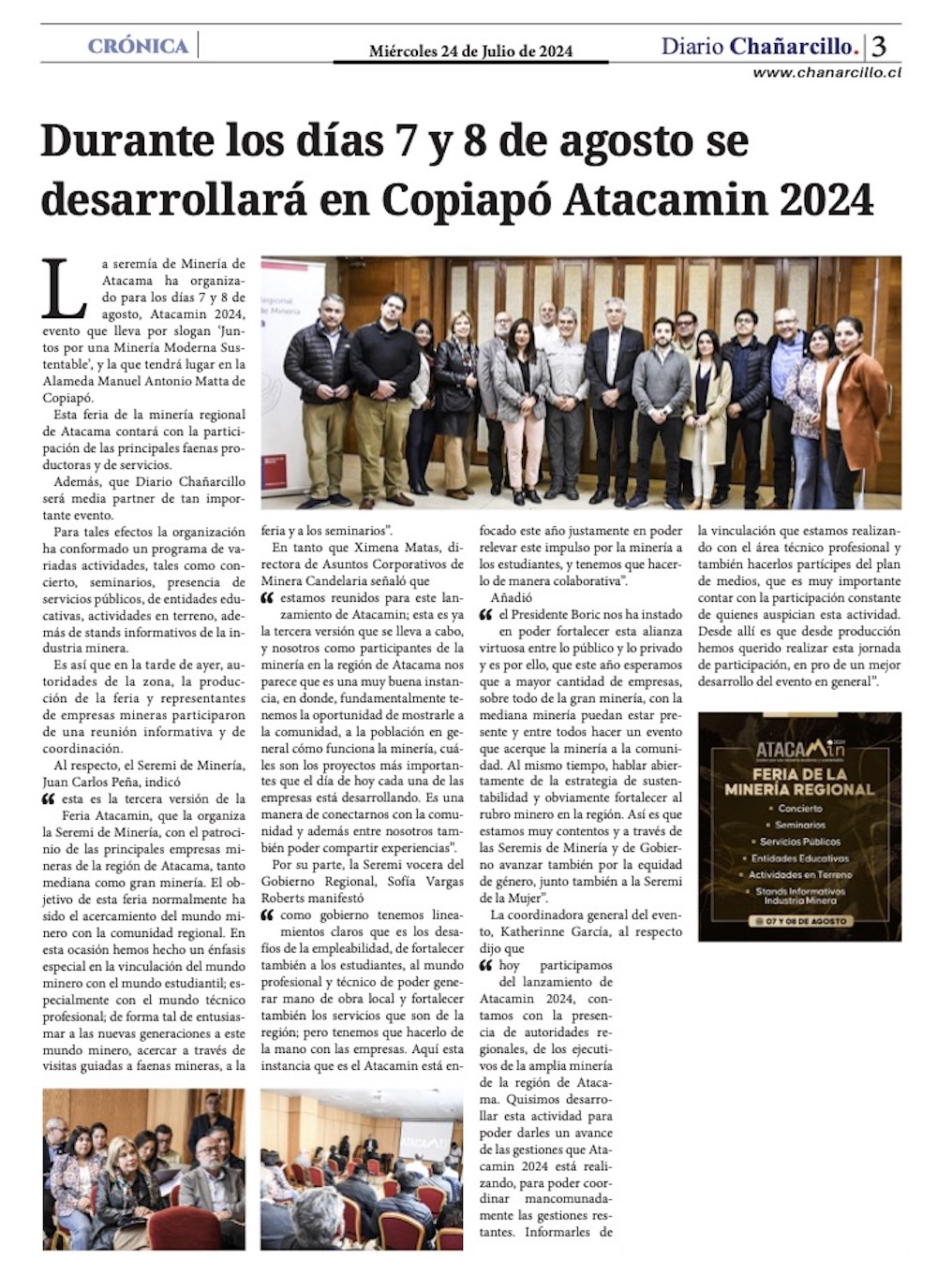 Durante los días 7 y 8 de agosto se desarrollará en Copiapó Atacamin 2024 - (chanarcillo.cl)