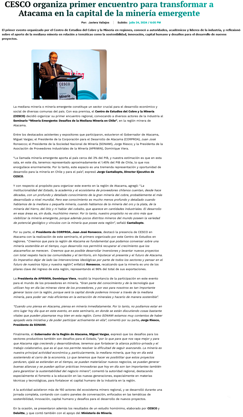 Cesco organizó encuentro que busca potenciar la minería atacameña - (El Diario de Atacama)