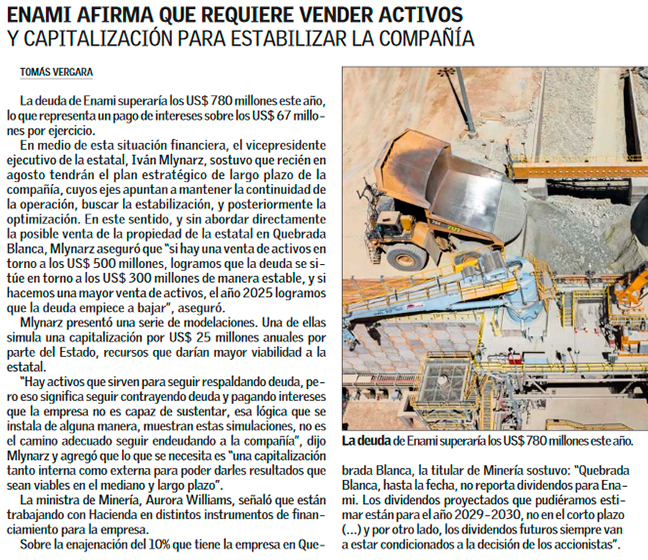 Vicepresidente de Enami: "Haciendo ventas de activos podríamos lograr contener la deuda" - (Pulso)