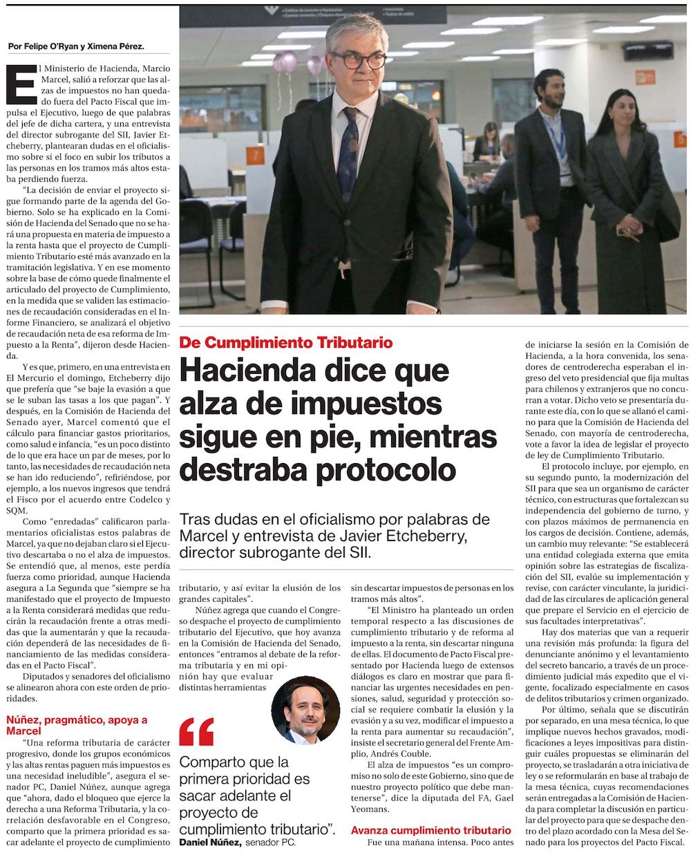 Gobierno descarta alza en recaudación fiscal en futura reforma de impuesto a la renta - (Pulso)