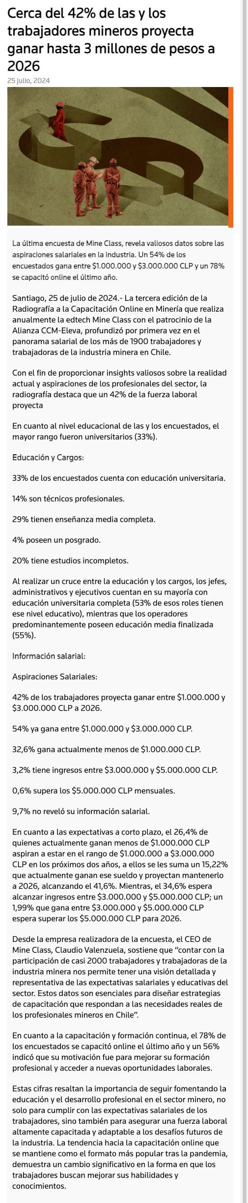 Cerca del 42% de las y los trabajadores mineros proyecta ganar hasta 3 millones de pesos a 2026 - (portalinnova.cl)