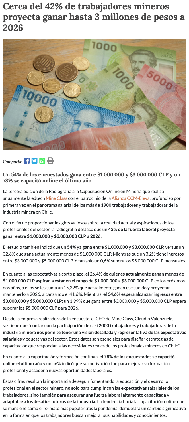 Cerca del 42% de las y los trabajadores mineros proyecta ganar hasta 3 millones de pesos a 2026 - (portalinnova.cl)