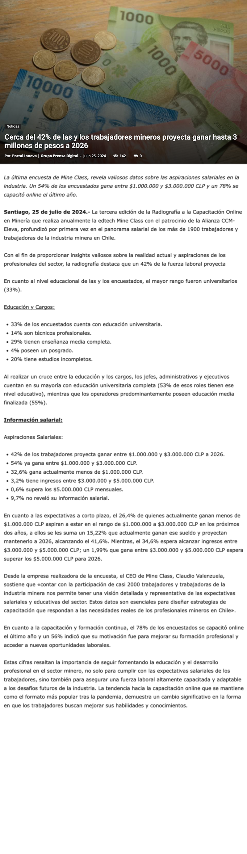 Cerca del 42% de las y los trabajadores mineros proyecta ganar hasta 3 millones de pesos a 2026 - (El Longino de Iquique)