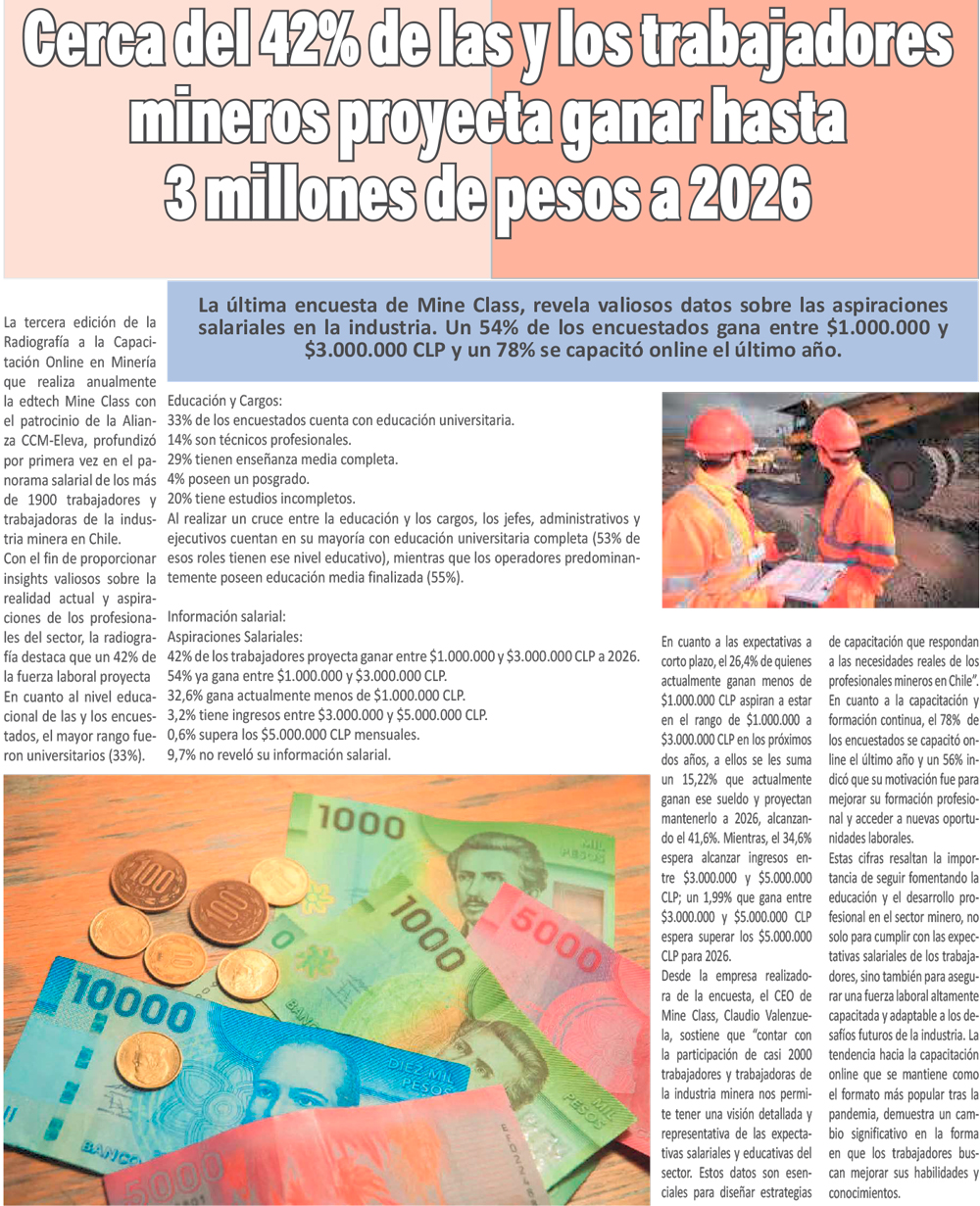 Cerca del 42% de las y los trabajadores mineros proyecta ganar hasta 3 millones de pesos a 2026 - (portalinnova.cl)