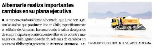 Albemarle realiza importantes cambios en su plana ejecutiva - (El Mercurio de Antofagasta)
