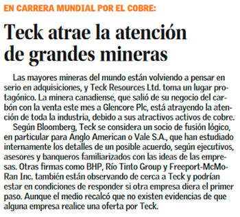 La atención se centra en Teck Resources y su papel en las fusiones mineras - (redimin)
