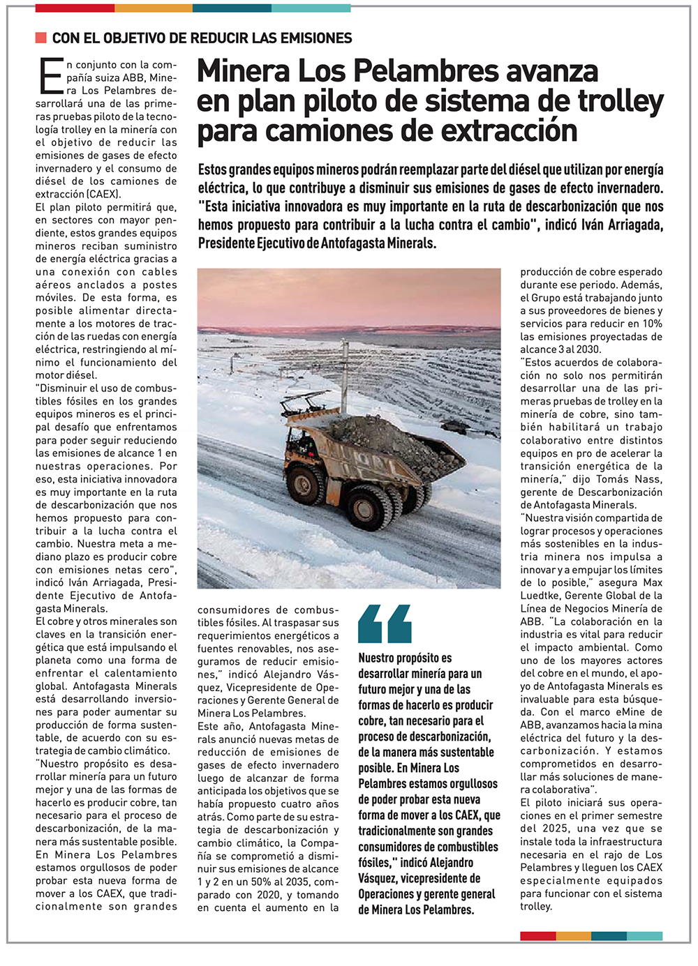 Minera Los Pelambres avanza en plan piloto de sistema de trolley para camiones de extracción - (La Región)