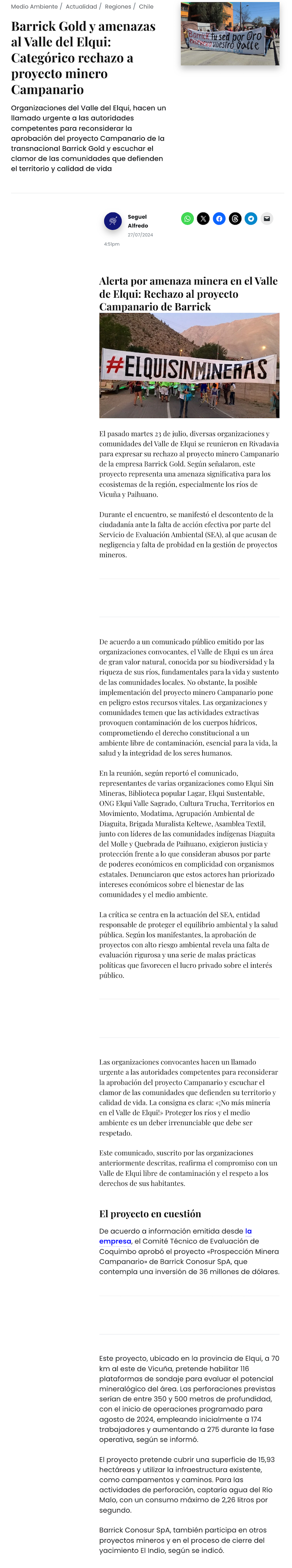 Proyecto de prospección minera en el Valle del Elqui logra aprobación ambiental - (El Día)