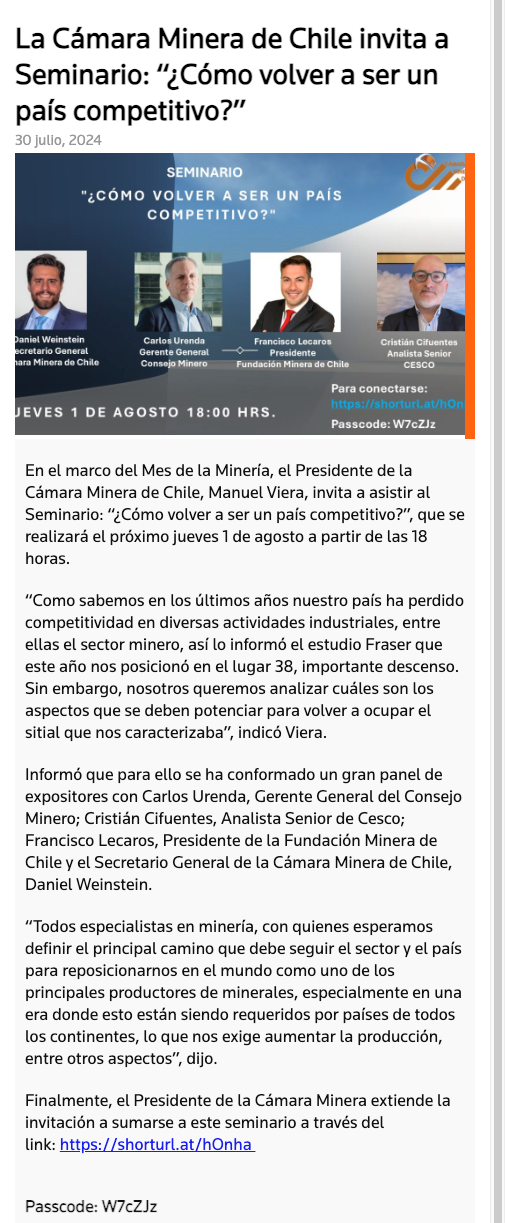 La Cámara Minera de Chile invita a Seminario: “¿Cómo volver a ser un país competitivo?” - (mvcomunicaciones.cl)