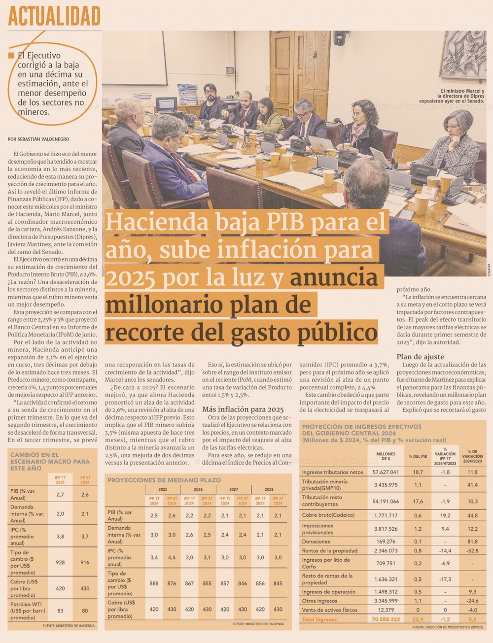 Hacienda proyecta menos ingresos fiscales, ajusta el gasto público y ve menor deuda para este año - (Pulso)