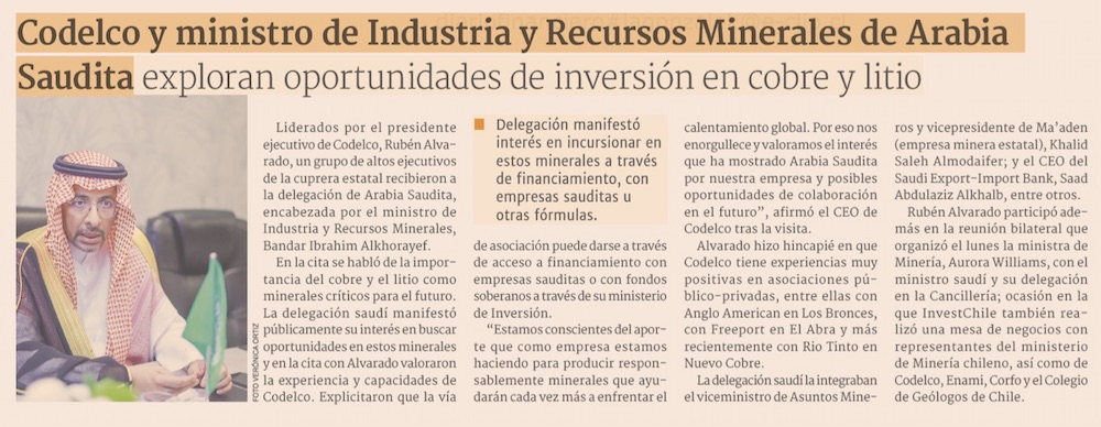 Ejecutivos de Codelco se reúnen con ministro saudí - (El Mercurio de Santiago)