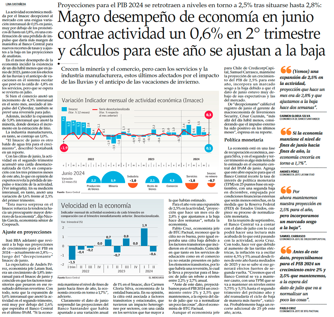 Mercado se toma con calma pobre actividad de junio, pero ve más lejos un PIB en torno a 3% este año - (Diario Financiero)