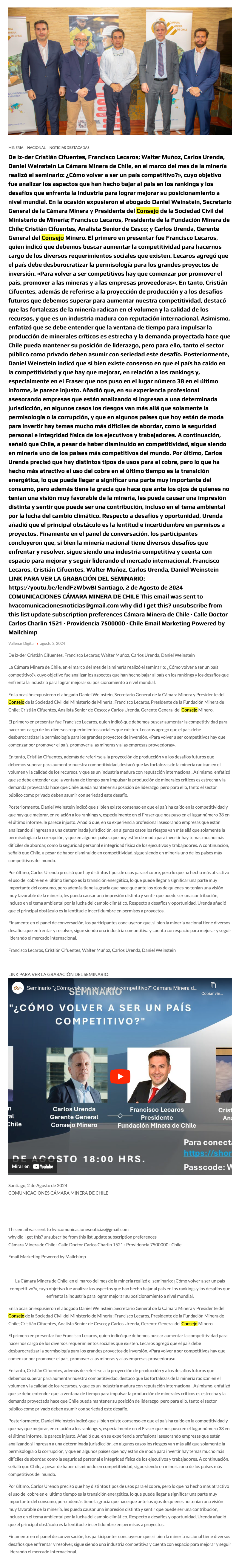 La Cámara Minera de Chile, en el marco del mes de la minería realizó el seminario ¿Cómo volver a ser un país competitivo? - (hvaradio.cl)