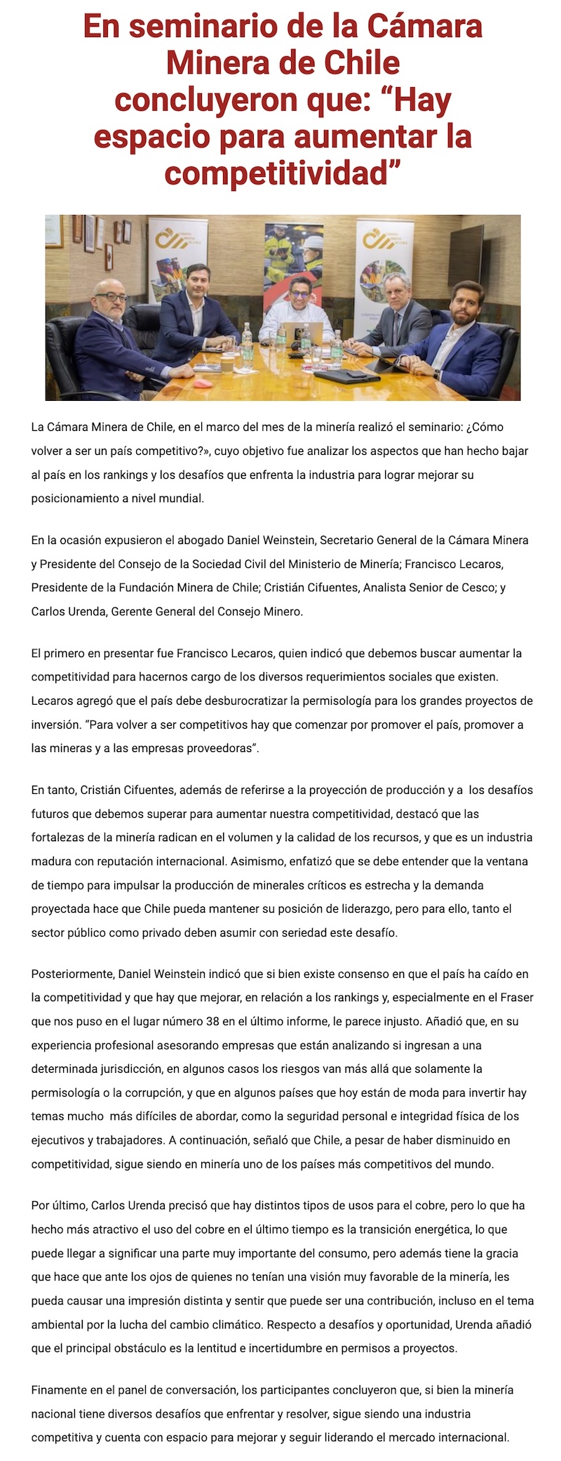 La Cámara Minera de Chile, en el marco del mes de la minería realizó el seminario ¿Cómo volver a ser un país competitivo? - (portalVallenarDigital.cl)
