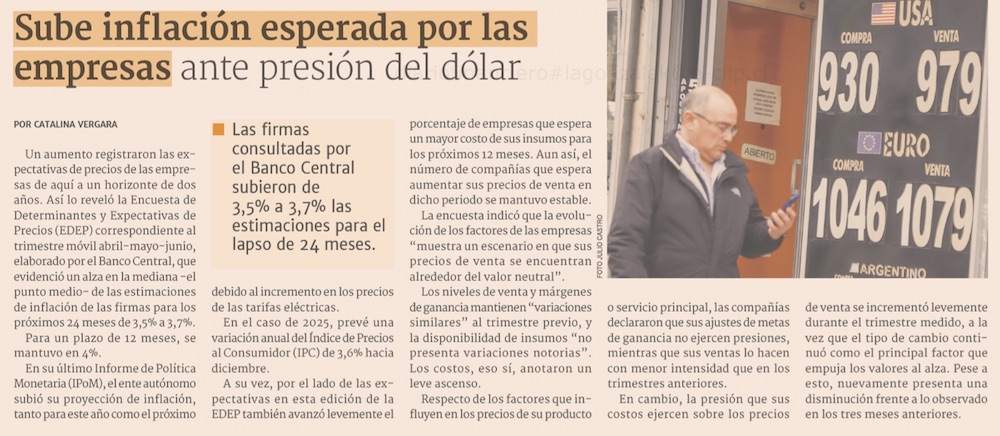 Hasta dónde podría llegar el dólar en Chile en medio del temor a nivel global - (El Mercurio de Santiago)