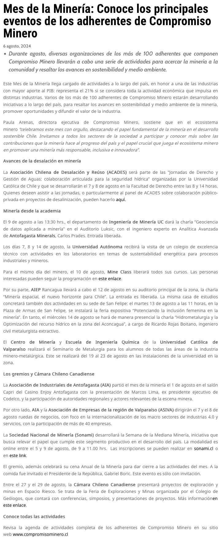 Mes de la Minería: Conoce los principales eventos de los adherentes de Compromiso Minero - (tierramarillano.cl)