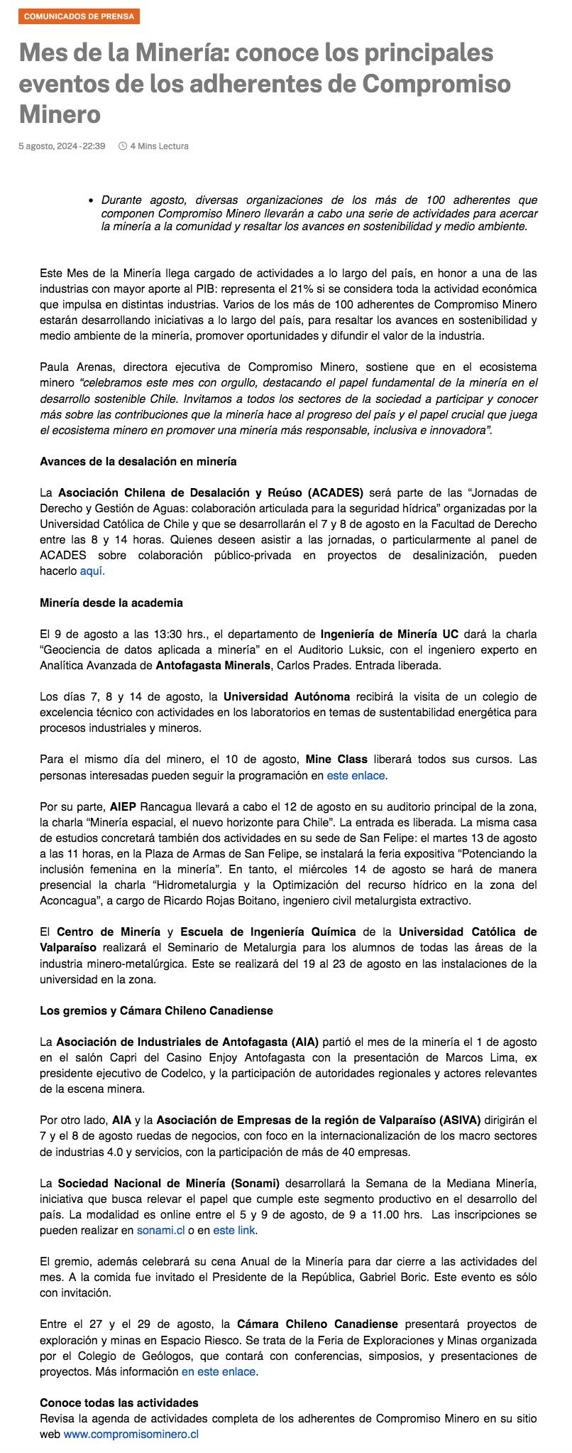 Mes de la Minería: Conoce los principales eventos de los adherentes de Compromiso Minero - (g5noticias.cl)